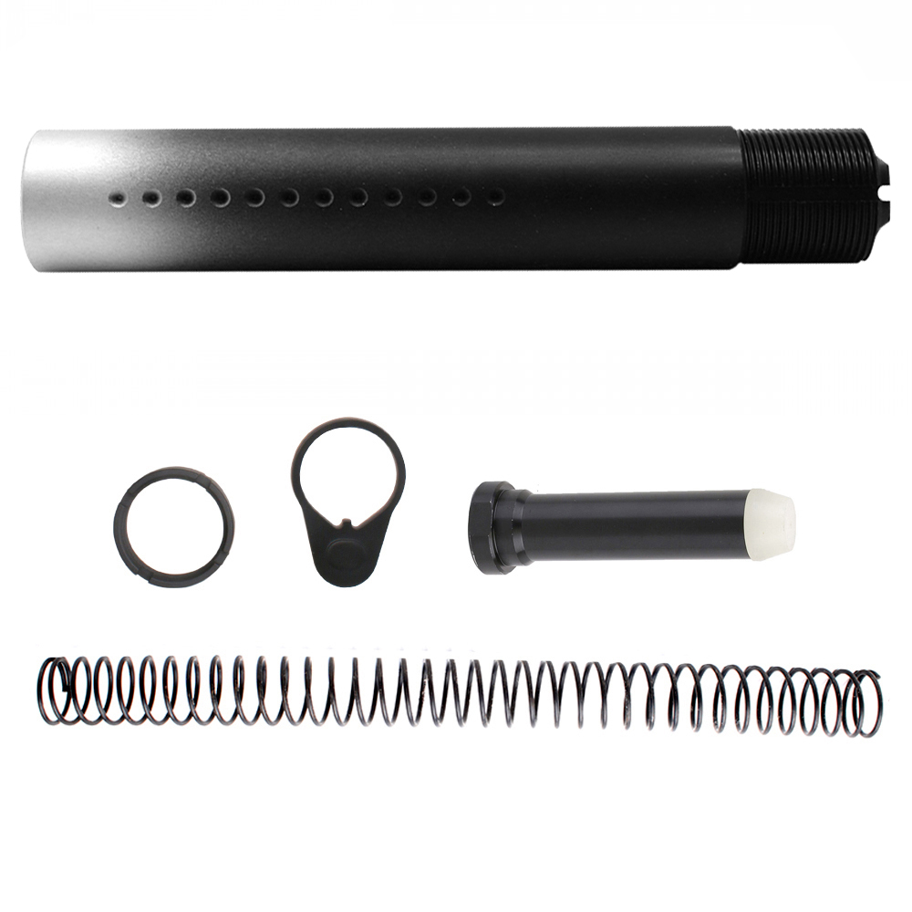 - CERAKOTE GRADIENT BLUE FLAM E| AR-15 .223/5.56 Complete Dimpled Pistol Buffer Tube Kit- NO FOAM- BLACK AND GLACIER SILVER