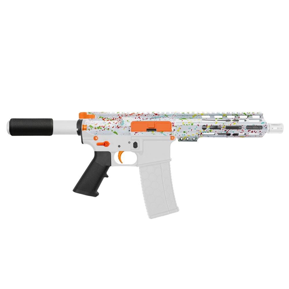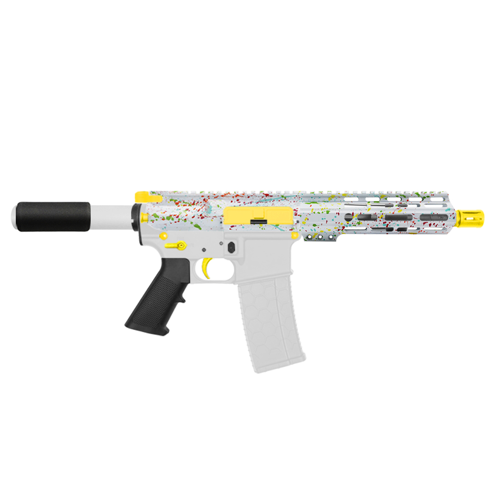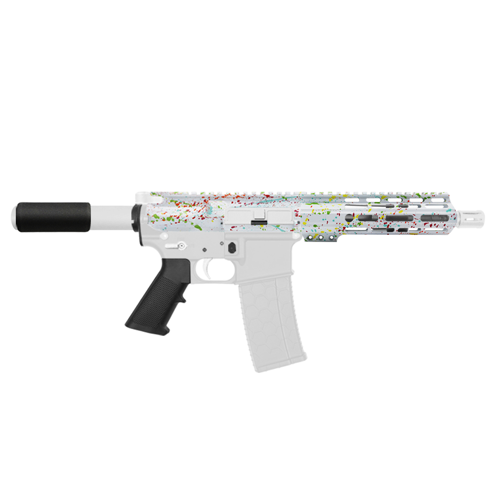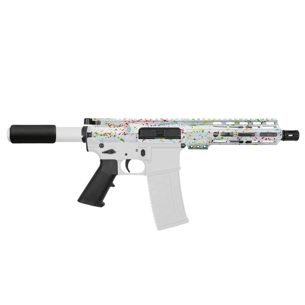 AR-15 5.56 NATO 7.5'' PISTOL KIT - FORGED UPPER WITH 7" Angle Cut Clamp on M-Lok Handguard - CERAKOTE WHI SPLATTER