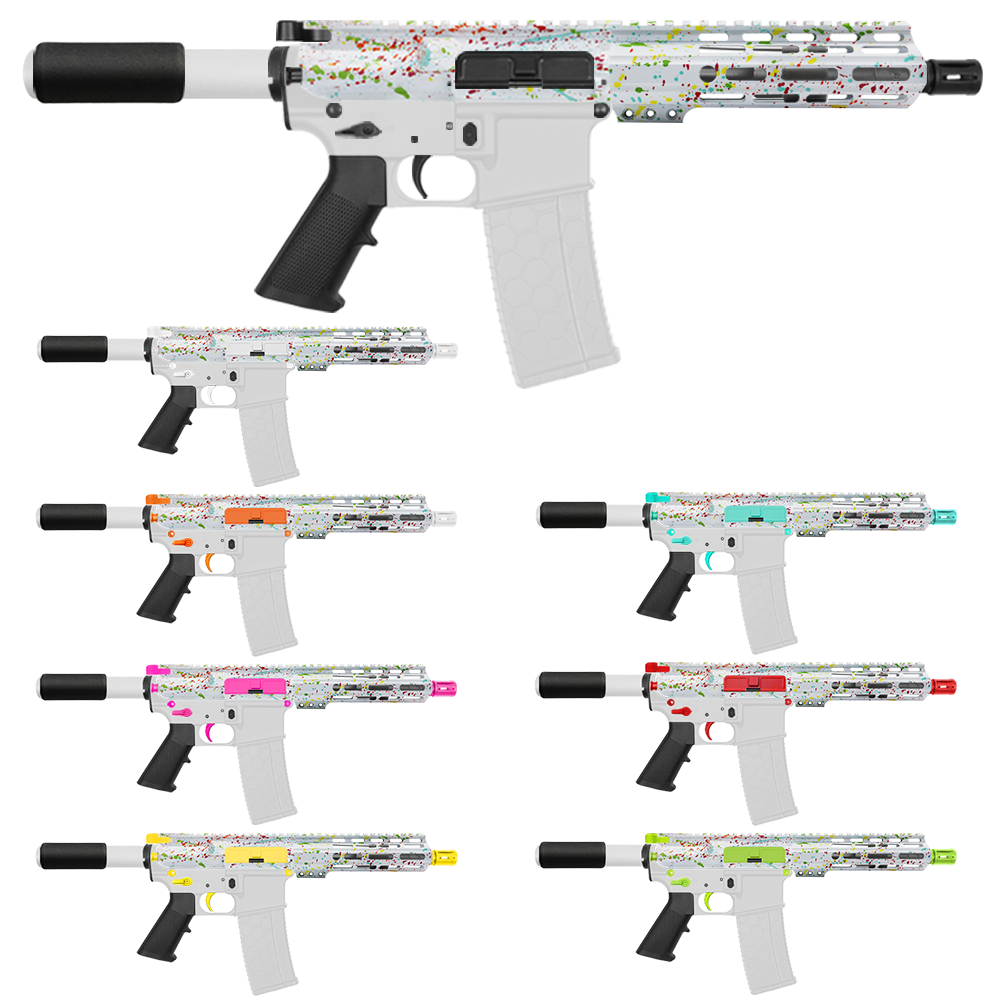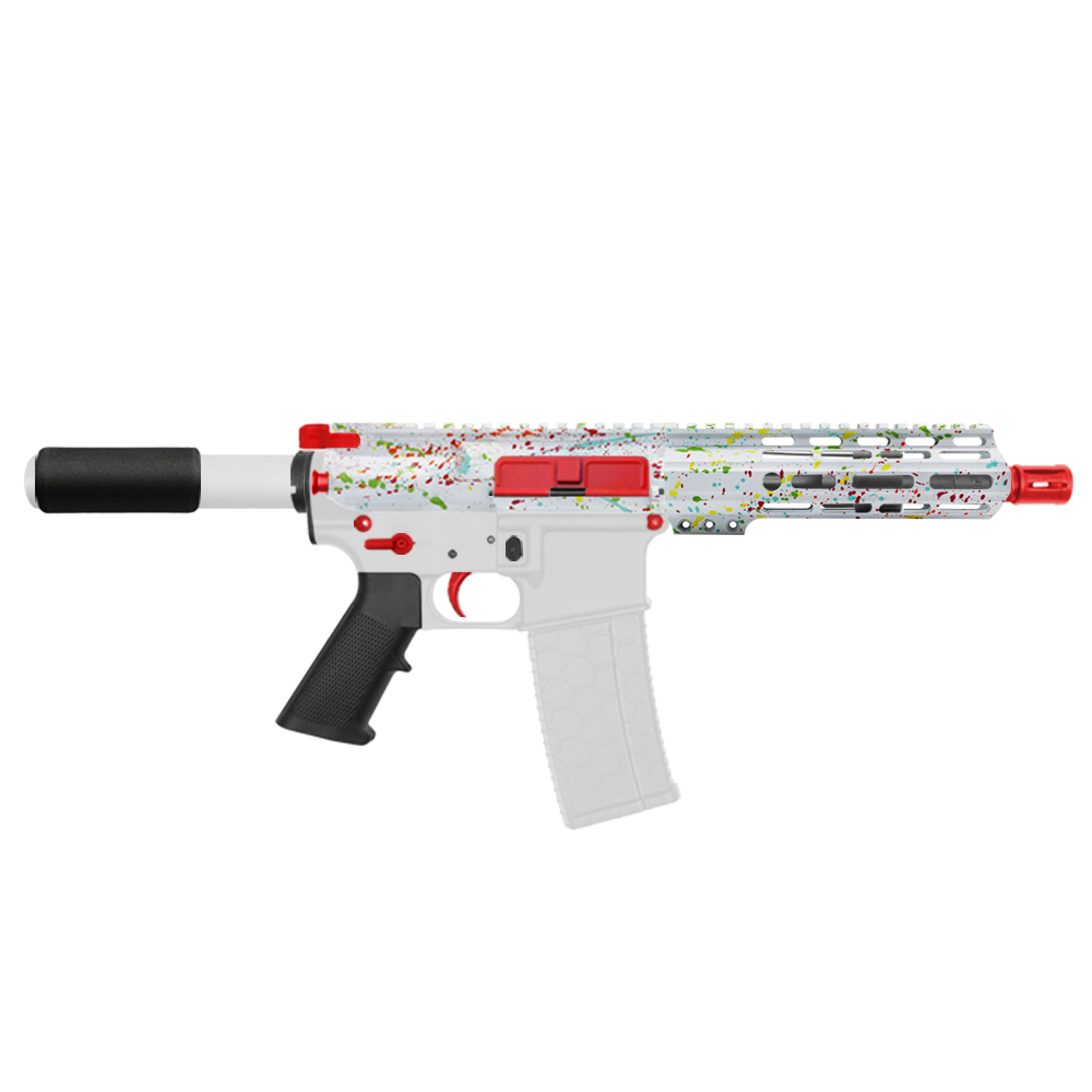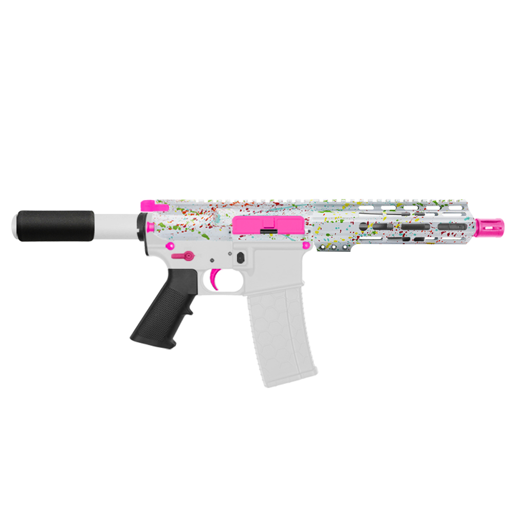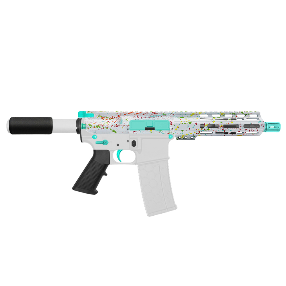 AR-15 5.56 NATO 7.5'' PISTOL KIT - FORGED UPPER WITH 7" Angle Cut Clamp on M-Lok Handguard - CERAKOTE WHI SPLATTER