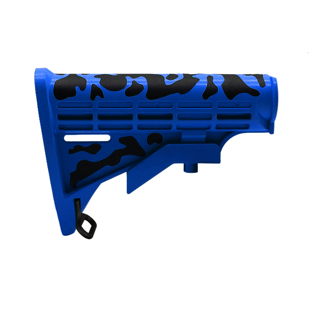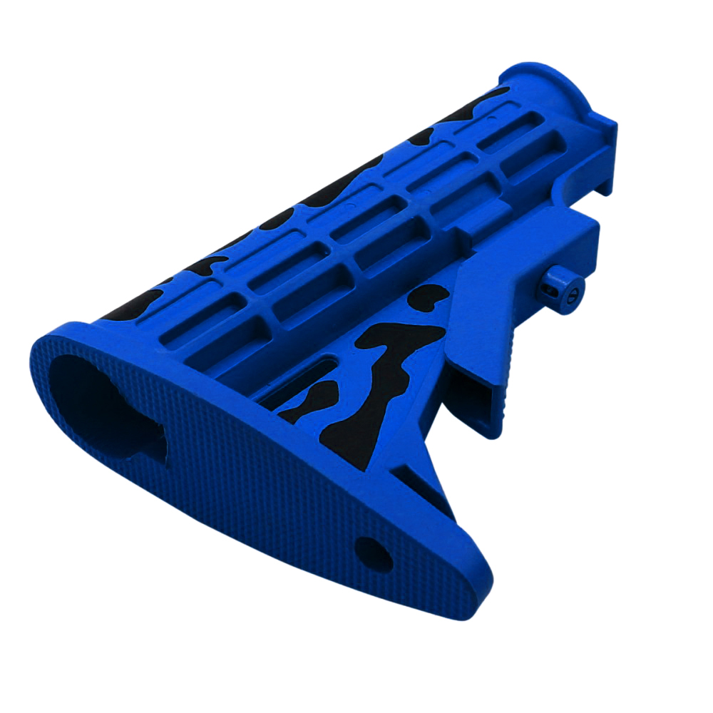 CERAKOTE CAMO| AR-15 Collapsible Standard Version Stock Body-Mil Spec| Black and Cerakote Blue Flame