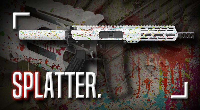 Cerakote Splatter | AR-15 Mil-Spec Upper Receiver - Base Hunter Orange - Pattern - Sniper Gray - Bright White - Lemon Zest - Made in U.S.A
